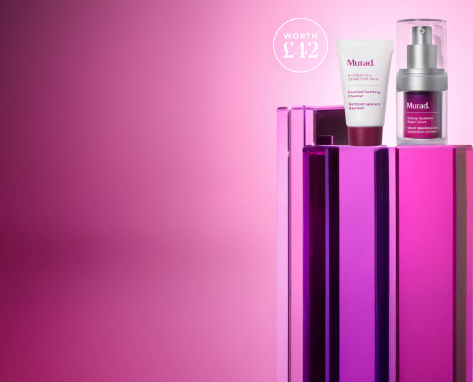 Complimentary Soothe & Hydrate Gift when you spend £90 or more. Gift auto-applied to eligible carts. Gift includes: Heartleaf Soothing Face Cleanser 15ml, Cellular Hydration Barrier Repair Serum 15ml. We reserve the right to change and/or cancel the promotion any time. Valid only on murad.co.uk until 9 February 8am GMT or whilst stocks last. One use per customer only. We reserve the right to modify or cancel this promotion at any time without notice. Terms of sale apply.